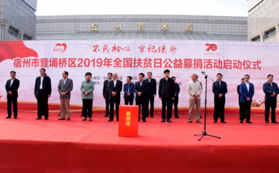10月17日,宿州市暨埇橋區(qū)2019年全國扶貧日公益募捐活動啟動儀式在宿城銀河廣場隆重舉行。募捐現(xiàn)場,我市愛心企業(yè)、單位、個人踴躍捐款,用實際行動助力脫貧攻堅。記者 董虎 攝